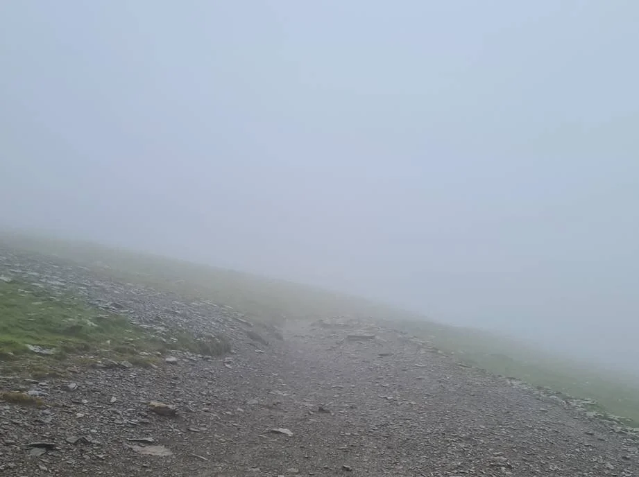 After several hours of climbing we thought we’d reached the top, but, disappointingly, it turned out there was still plenty more mountain to climb hidden in the fog ahead…
